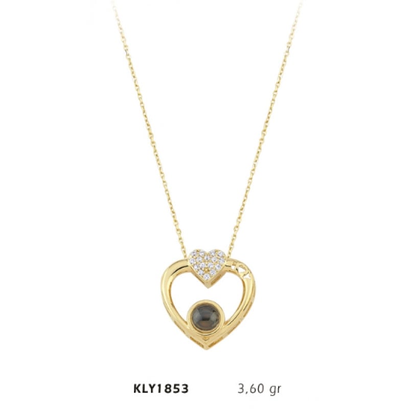 14 Ayar Altın 100 Dilde Seni Seviyorum Taşlı Kalp Kolye KLY1853