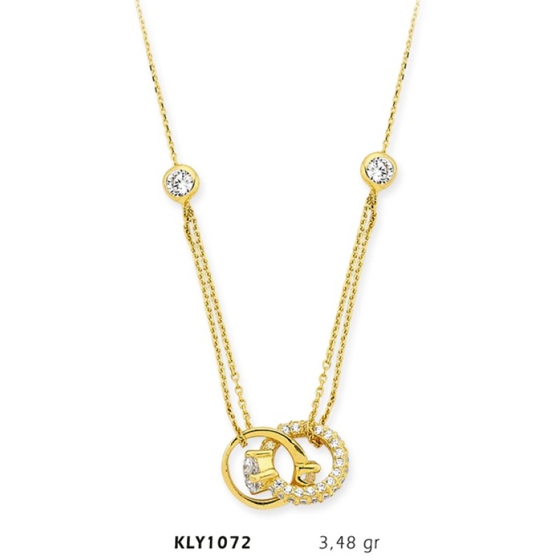 14 Ayar Altın Çift Tektaş Yüzük Kolye KLY1072