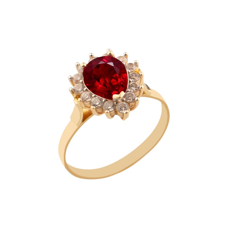 14 Ayar Altın Damla Model Yakut Yüzük HSM10096