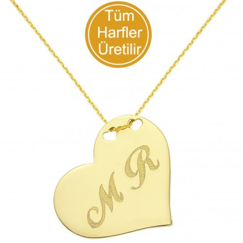 14 Ayar Altın Kalp Plaka İsim Kolye - AD13