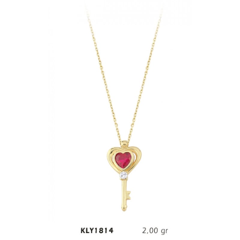 14 Ayar Altın Kalpli Tektaş Anahtar Kolye KLY1814