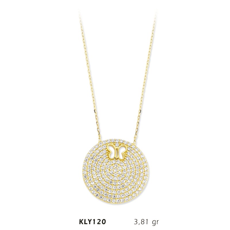 14 Ayar Altın Kelebek Daire Kolye KLY120