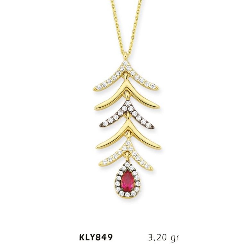 14 Ayar Altın Kırmızı Damla Taşlı Kolye KLY849
