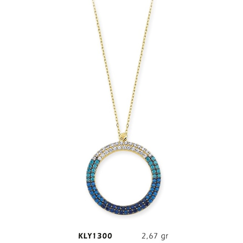 14 Ayar Altın Mavi Halka Kolye KLY1300