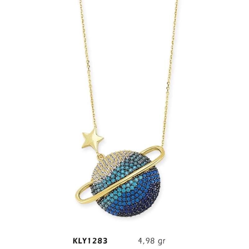 14 Ayar Altın Mavi Satürn Kolye KLY1283