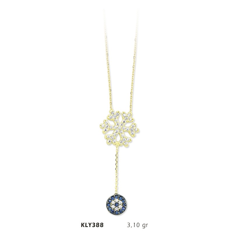 14 Ayar Altın Nazar Boncuğu Kar Tanesi Kolye KLY388