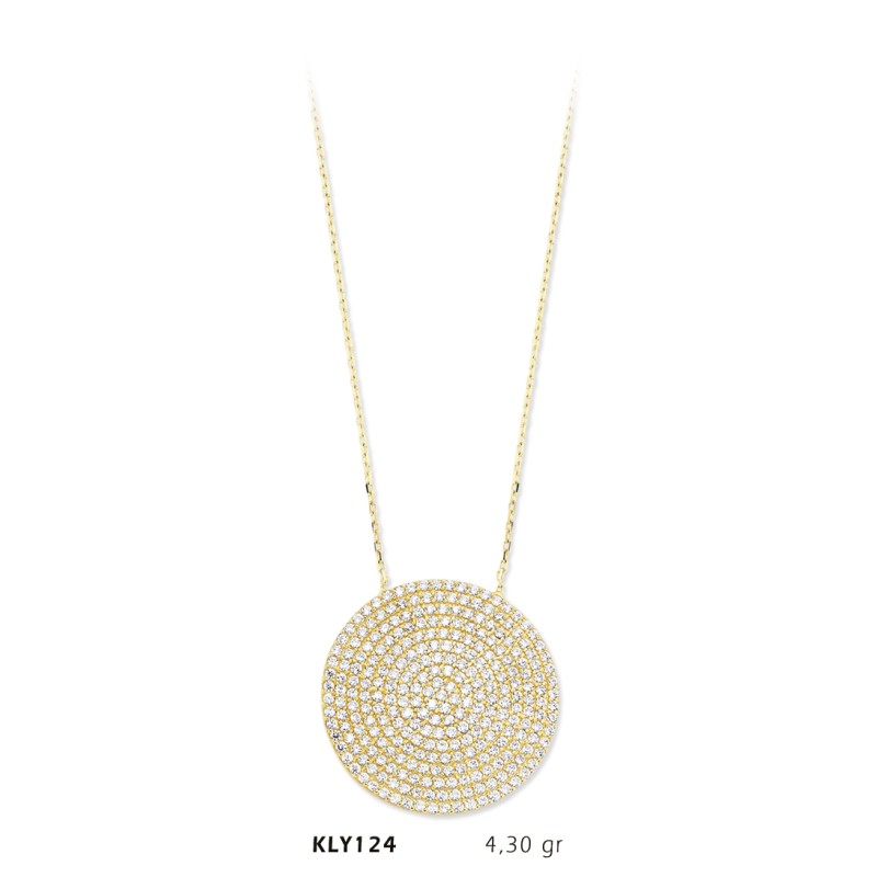 14 Ayar Altın Taşlı Daire Kolye KLY124