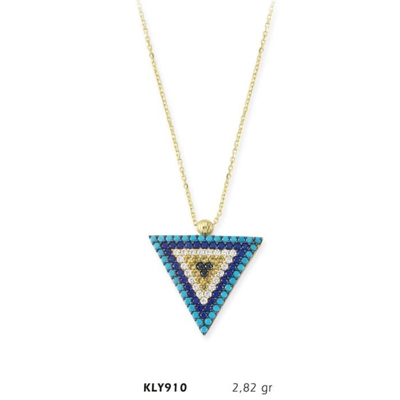 14 Ayar Altın Üçgen Nazar Boncuğu Kolye KLY910
