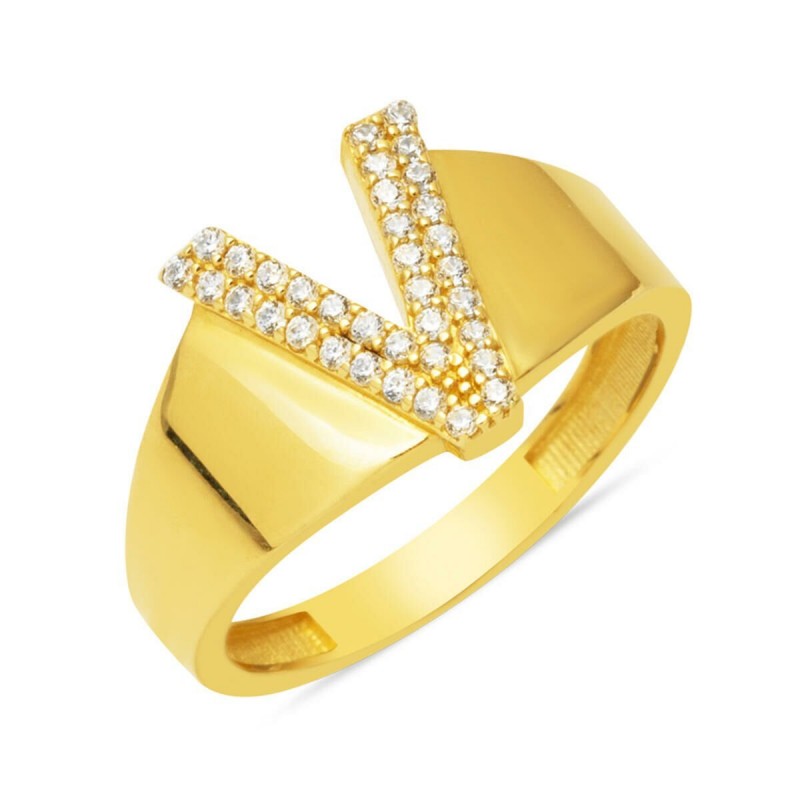 14 Ayar Altın V Harf Yüzük YZK433