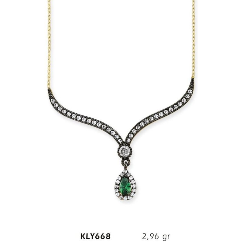 14 Ayar Altın Yeşil Taşlı Otantik Kolye KLY668