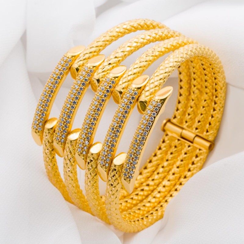 Beş Sıra İşlemeli Kaburga Kelepçe Bilezik BLK6631
