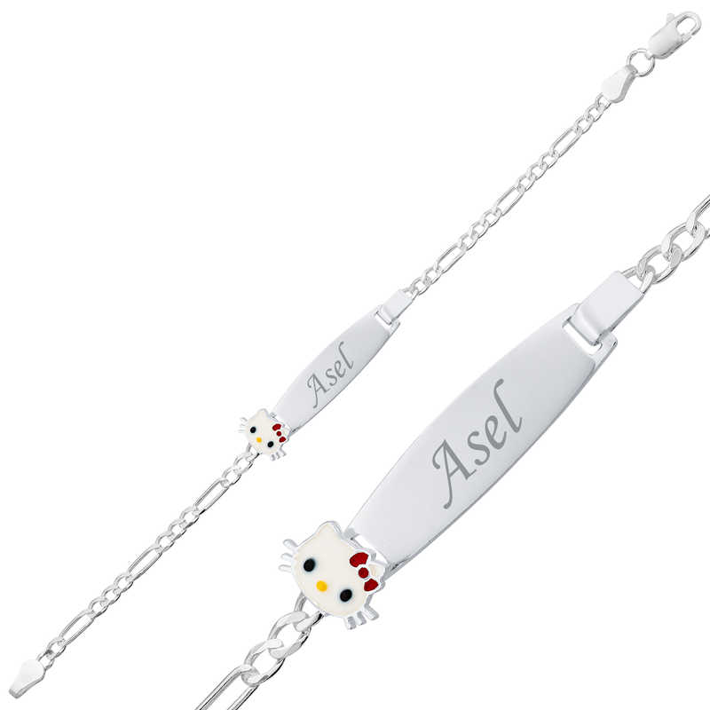 Gümüş Kedi Plaka Çocuk Bileklik