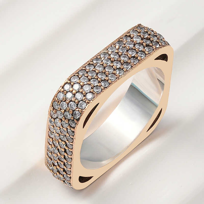 Gümüş 4 Sıra Kare Tamtur Kadın Yüzük