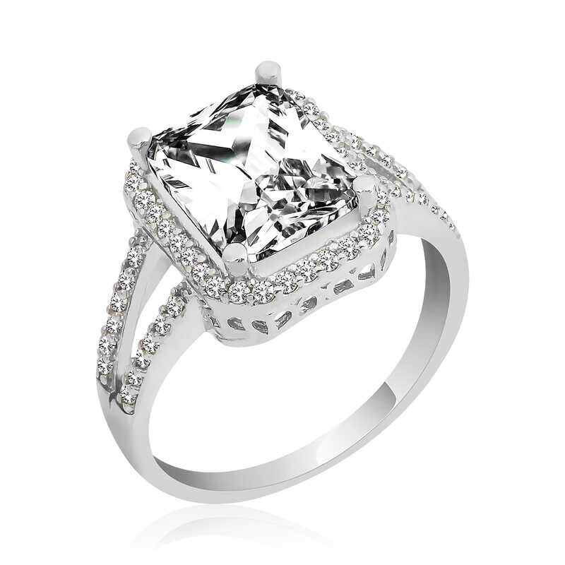 Gümüş Beyaz Baget Kare Bayan Yüzük