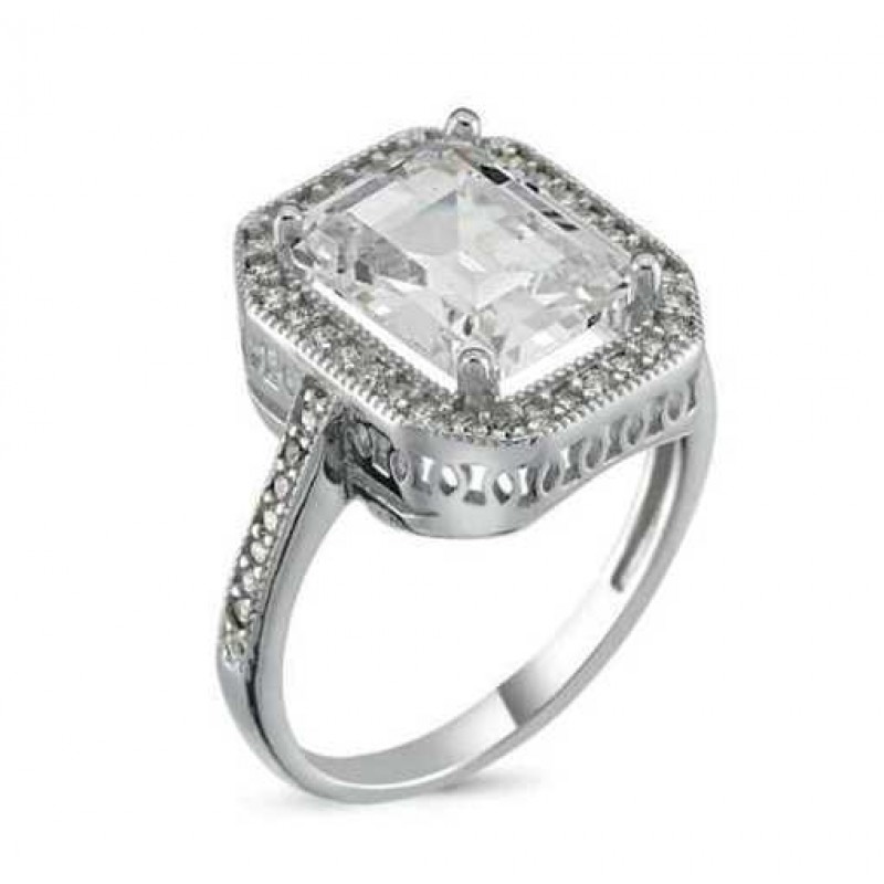 Gümüş Beyaz Baget Kare Bayan Yüzük