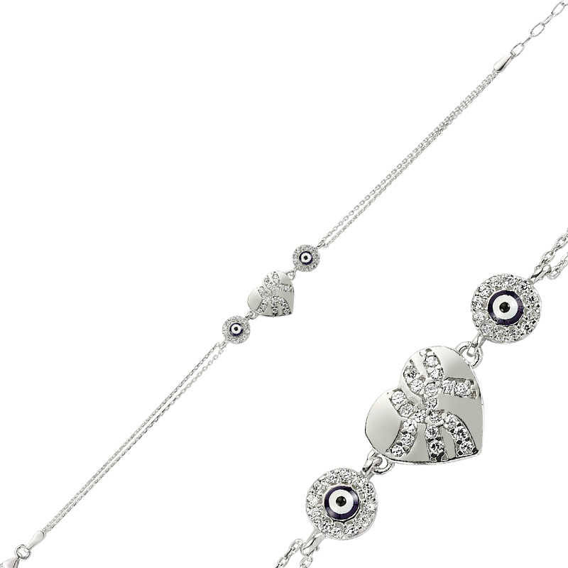 Gümüş Nazarlı Kalp Bayan Bileklik