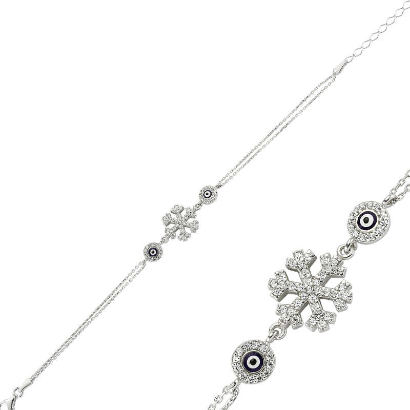 Gümüş Nazarlı Kar Tanesi Bayan Bileklik