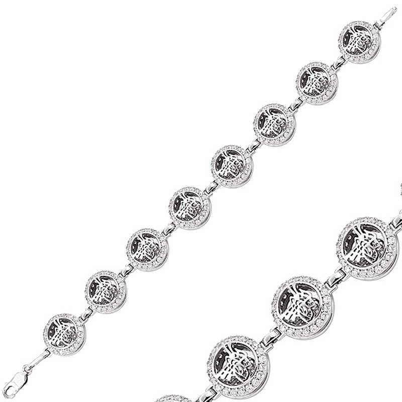Osmanlı devleti padişahlarının imzası olan tuğra modeli bu özel tasarım yuvarlak bayan bileklik modeline işlenmiştir. 925 ayar gümüşten imal edilmiştir. Bileklik üzerindeki beyaz taşlar zirkondur. Gümüş üzerinerodyum kaplama yapılmıştır. Altın ve rodyum kaplama yapılan gümüş bileklik modelleri parlaklığını uzun süre muhafaza eder. Uzatma zinciri sayesinde her bilek kalınlıklarına göre ayarlanabilir. Tüm bayan bileklik modellerimizde olduğu gibi tuğralı bayan bileklik modeli de tamamen el emeği ile üretilmiştir. Gümüş ve değerli taşlar nedeniyle belirtilen ortalama ürün ağırlığında ± %10 sapma olabilmektedir.