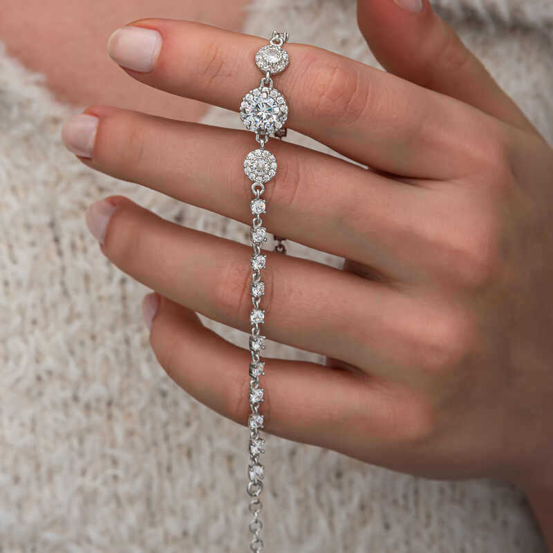 Gümüş Zirkon Taşlı Yuvarlak Kadın Bileklik