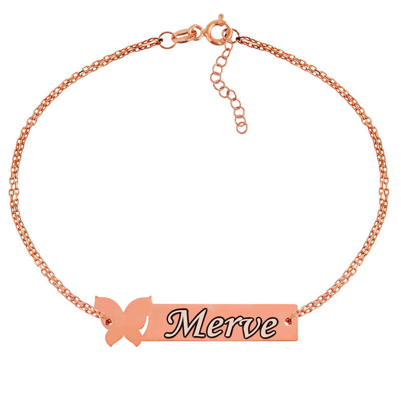 Gümüş Rose Kişiye Özel Kelebek İsimli Bayan Bileklik