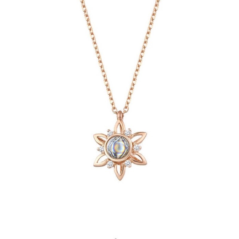 100 Dilde Seni Seviyorum Çiçekli Gümüş Rose Kolye GMS1837