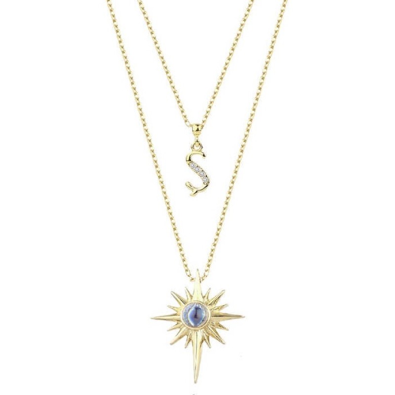100 Dilde Seni Seviyorum Harfli Kutup Yıldızı Sarı Renk Gümüş Kolye GMS2062