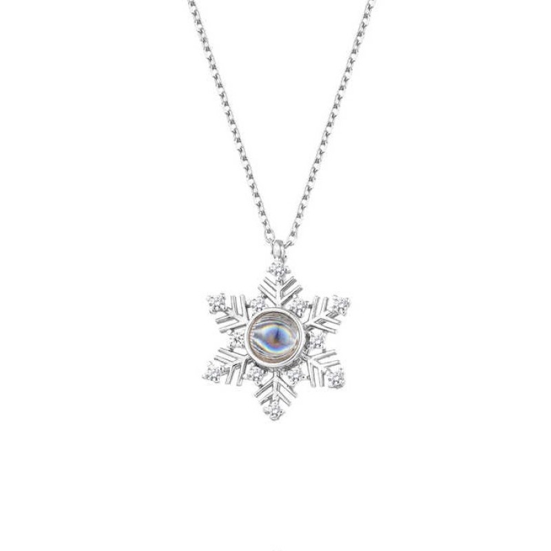 100 Dilde Seni Seviyorum Kar Tanesi Gümüş Beyaz Kolye GMS1878