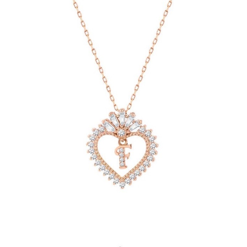 Baget Taşlı Kalpli Harfli Gümüş Rose Kolye GMS1909