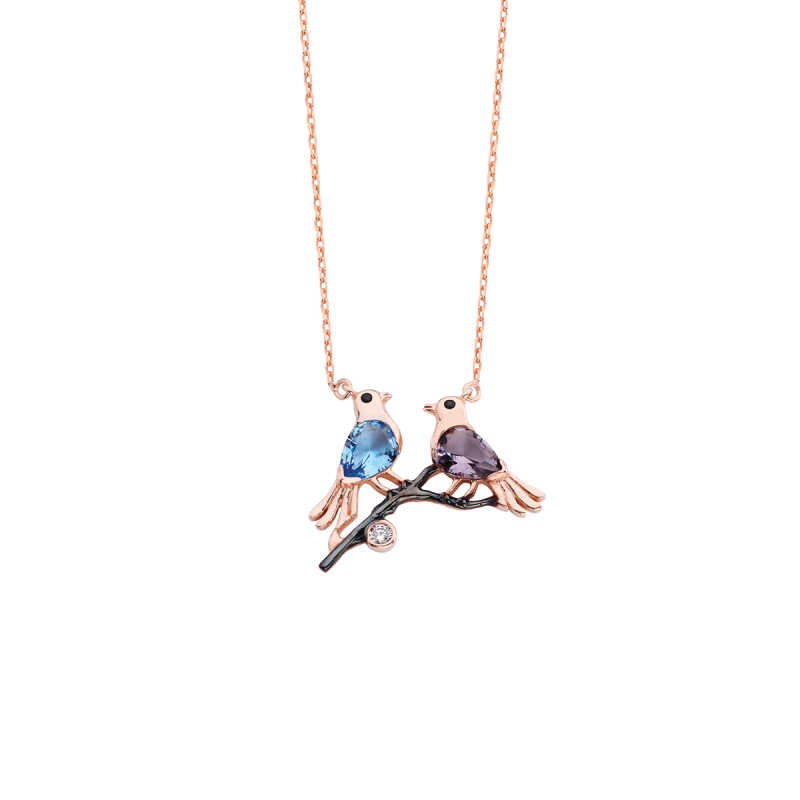 Çift Kumrular Kuşlu Gümüş Kolye GMS1559