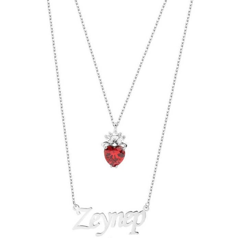 Çift Zincirli İsimli Taçlı Gümüş Beyaz Kolye GMS1890