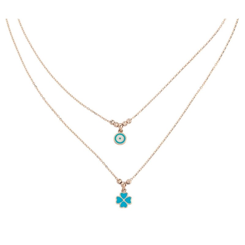 Çift Zincirli Nazar Yonca Gümüş Kolye GMS325