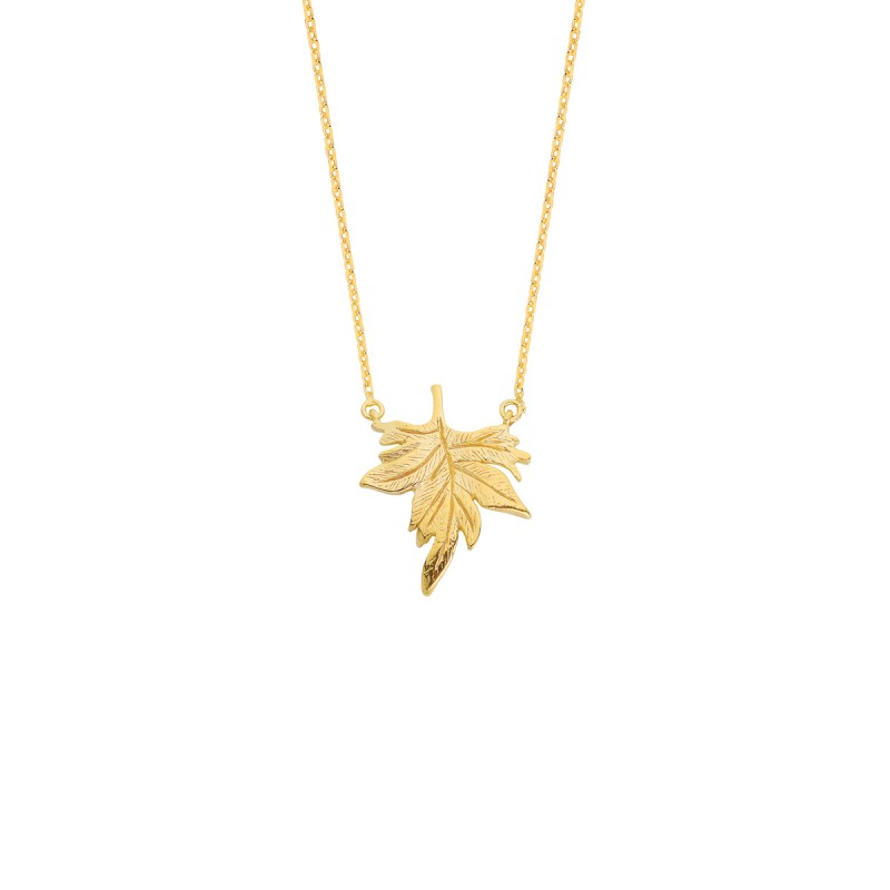 Çınar Yaprağı Altın Rengi Gümüş Kolye GMS16