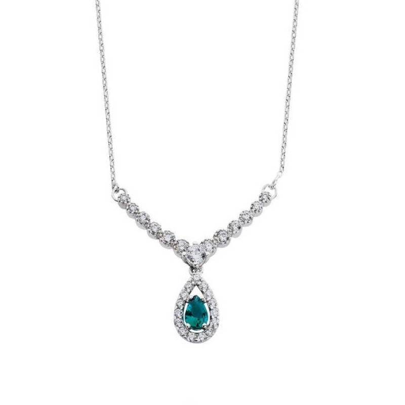 Damla Taşlı V Montür Gümüş Kolye GMS2070