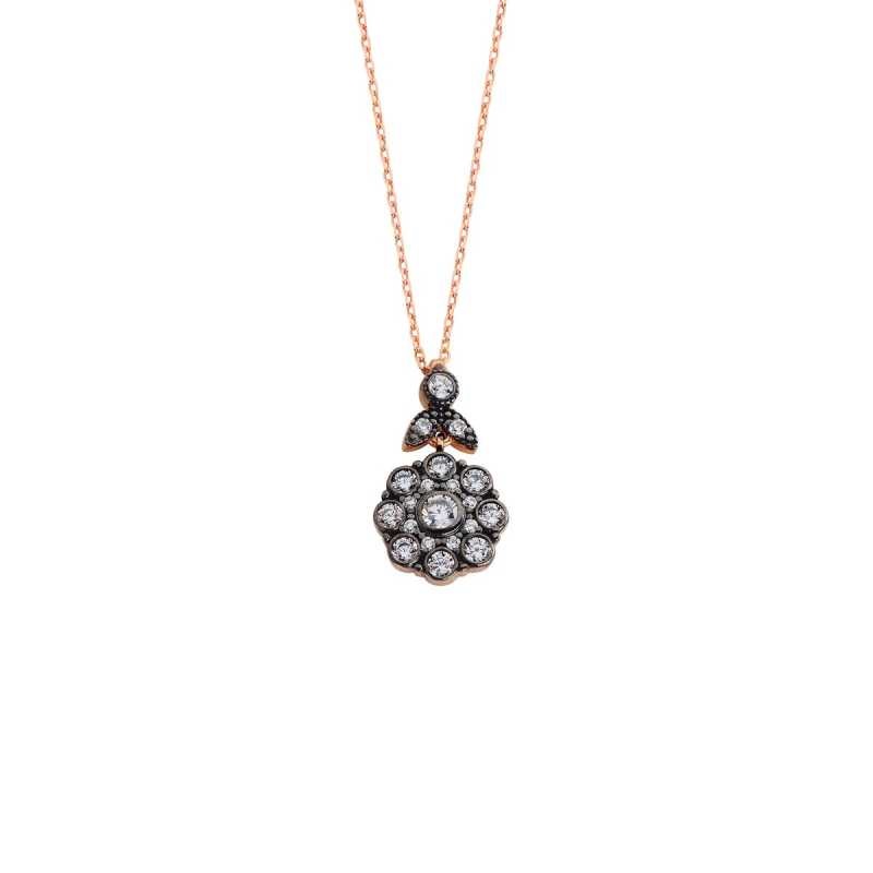Elmas Montür Çiçek Gümüş Kolye GMS1763
