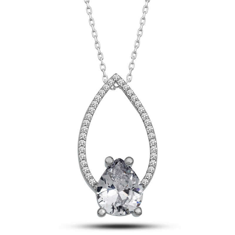 Gümüş Beyaz Taşlı Damla Kadın Kolye