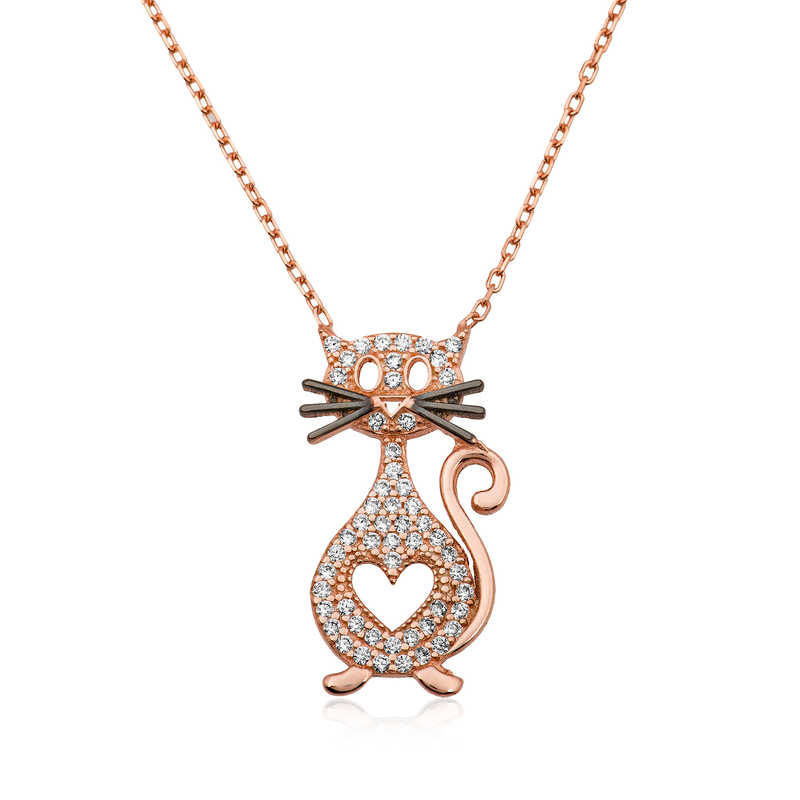 Evlerimizin sevimli neşe kaynağı kediler, temiz olmalarının yanı sıra masumiyetin simgesidir. Asil ve mantıklı bir kişiliğe, mükemmel sezgilere ve akılcı bir duyarlılığa sahiptirler. Özel günlerin en tercih edilen hediye seçeneklerinden olan gümüş takılar, sevdiklerini mutlu etmek ve onlara her an yanlarında taşıyabilecekleri bir hediye vermek isteyenler için tasarlandı. Masumiyetin simgesi olan kedi figürlü gümüş kolyeyi kız kardeşinize, sevgilinize ya da arkadaşlarınıza armağan edebilirsiniz. Kalpli kedi kolye modeli 925 ayar gümüşten imal edilmiştir. Gümüş üzerine rose altın kaplama yapılmıştır. Rose altın kaplama yapılan gümüş bayan kolye modelleri parlaklığını uzun süre muhafaza eder ve oksitlenmesi gecikir. Gümüş olan zincir boyu ortalama 45 cm'dir. Gümüş kalpli kedi kolye diğer tüm gümüş bayan kolye modellerinde olduğu gibi el emeği ile üretilmiştir. Gümüş ve değerli taşlar nedeniyle belirtilen ortalama ürün ağırlığında ± %10 sapma olabilmektedir.