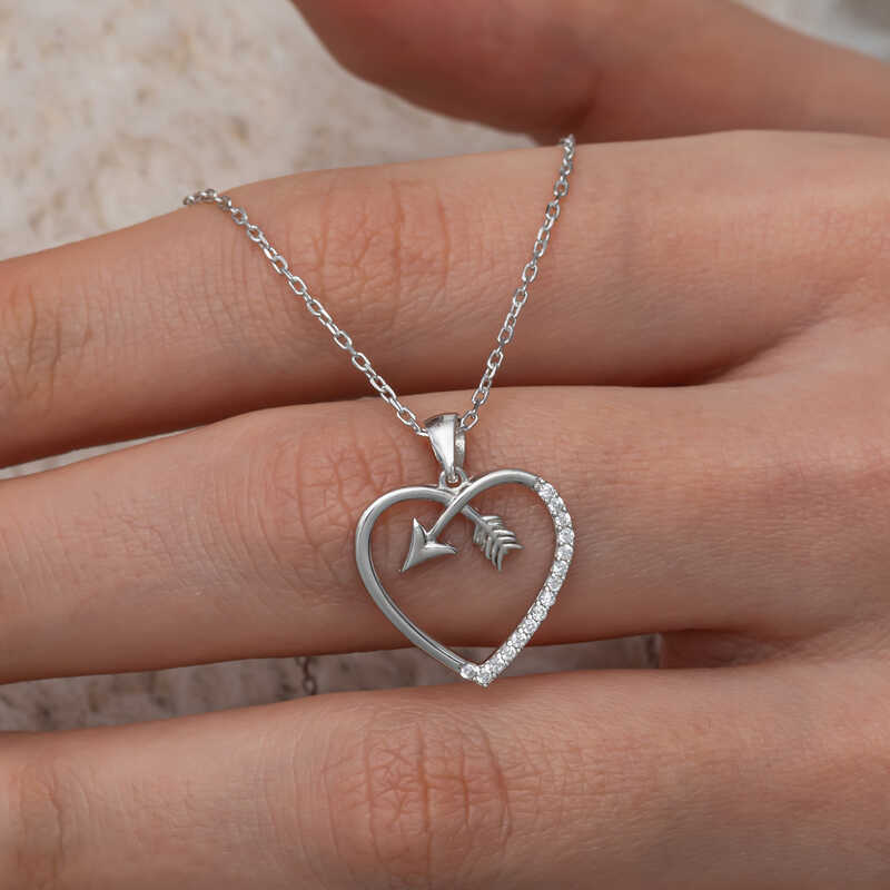 Gümüş Kalpli Ok Kadın Kolye