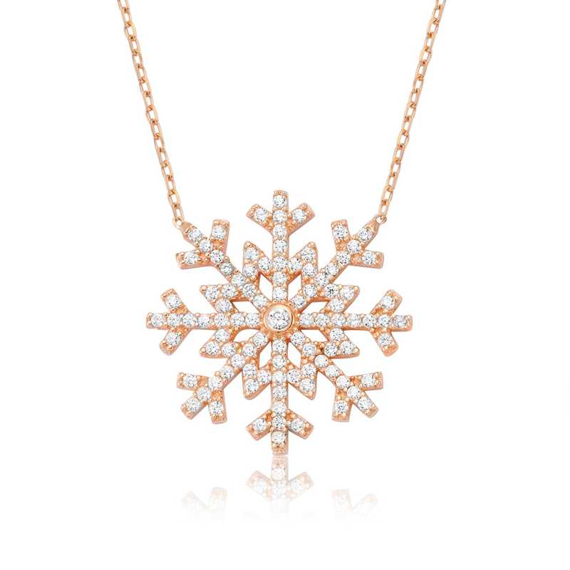 Her kar tanesinden aslında sadece bir tane var. Sevdiğiniz kişiye hediye ettiğiniz kar tanesi kolye ile onun sizin için eşsiz ve biricik olduğunu sessizce dillendirmiş oluyorsunuz. Sizlerde her zevke uygun gümüş kar tanesi bayan kolye modeli ile şıklığınıza ışıltı katın. Kar tanesi bayan kolye 925 ayar gümüşten imal edilmiştir. Gümüş üzerine rose altın kaplama yapılmıştır. Rose altın kaplama yapılan gümüş bayan kolye modelleri parlaklığını uzun süre muhafaza eder ve oksitlenmesi gecikir. Kolye üzerinde bulunan beyaz taşlar zirkondur. Gümüş olan zincir boyu ortalama 45 cm'dir. Gümüş kar tanesi bayan kolye modeli diğer kar tanesi bayan kolye modelleri gibi el emeği ile üretilmiştir. Gümüş ve değerli taşlar belirtilen nedeniyle ürün ağırlığında ± %10 sapma olabilmektedir.