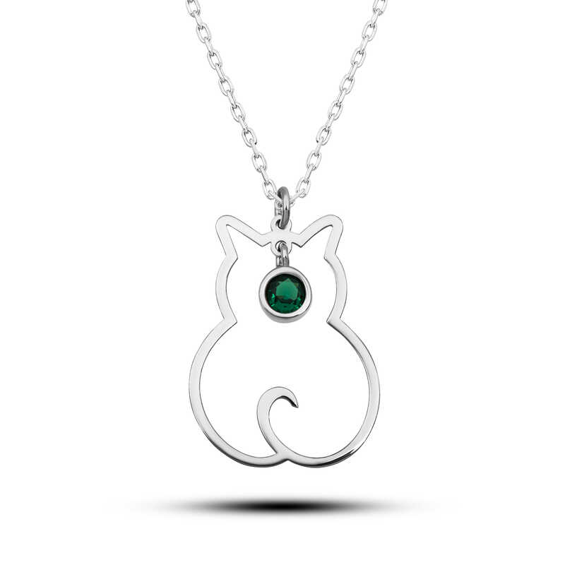 Gümüş Mayıs Ayı Doğum Taşı Kedi Kadın Kolye