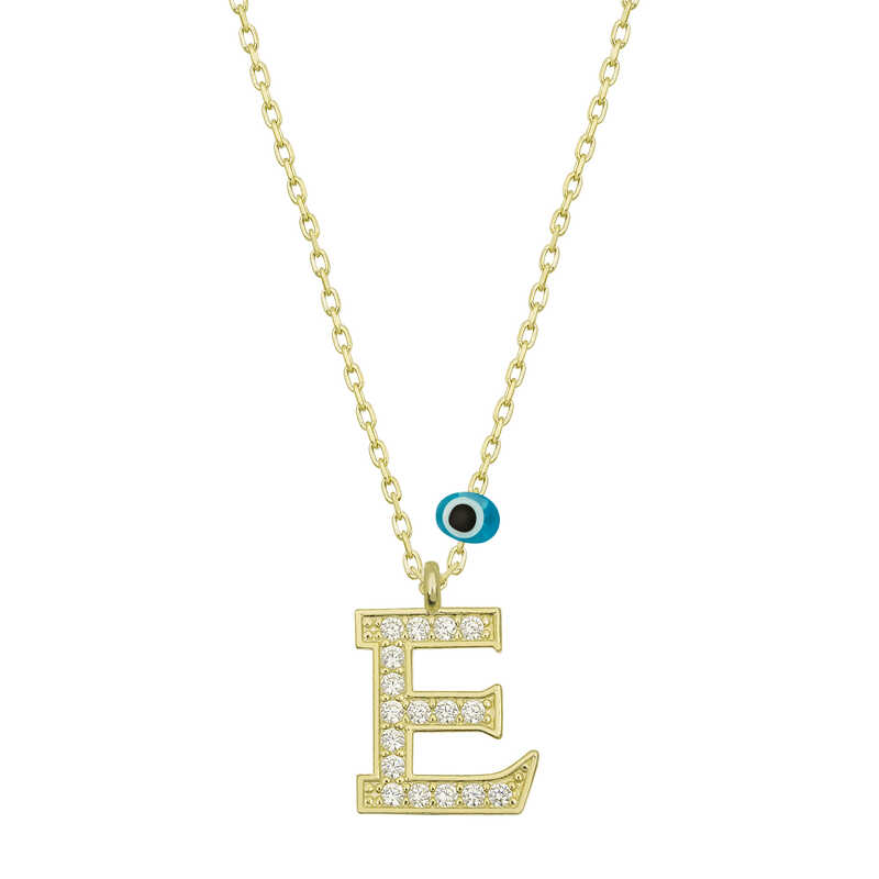 Gümüş Nazar Gold E Harfi Kadın Kolye