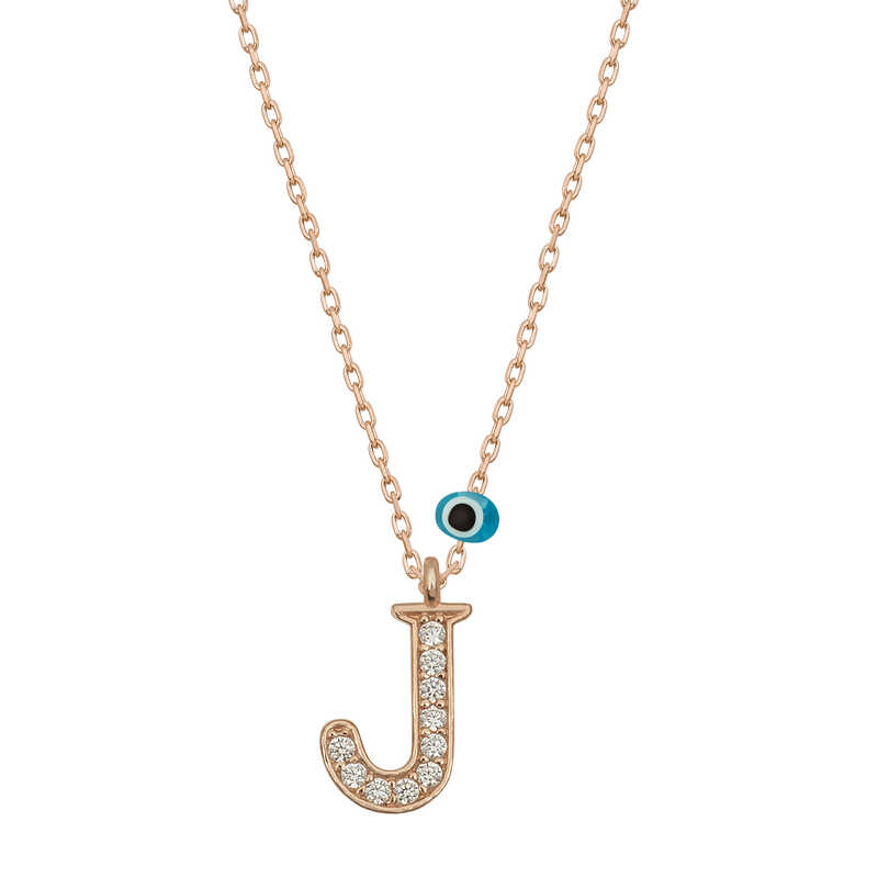 Gümüş Nazar Rose J Harfi Kadın Kolye