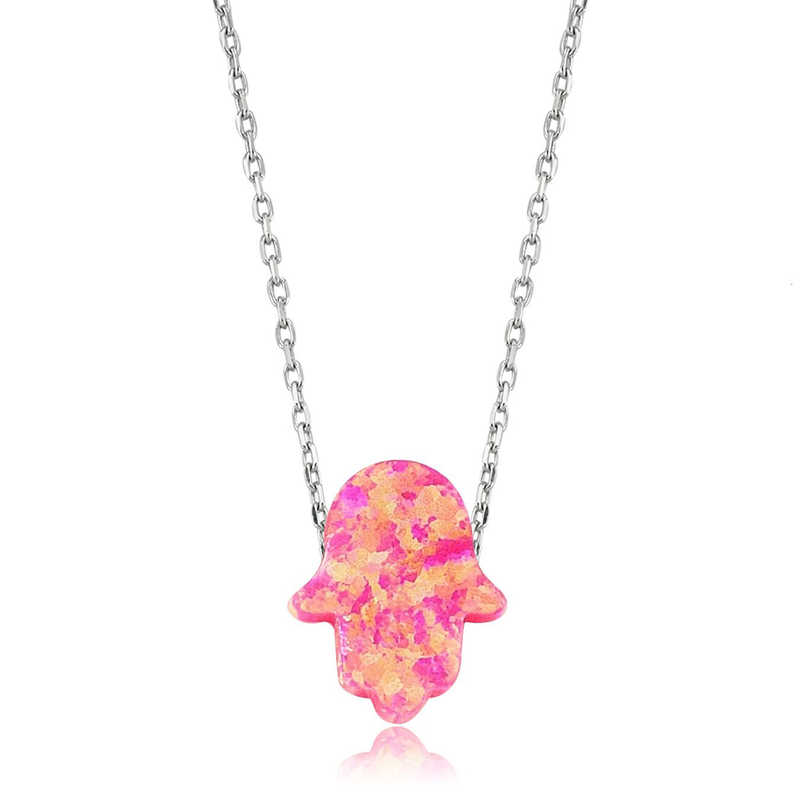 Gümüş Pembe Opal Fatma Eli Bayan Kolye
