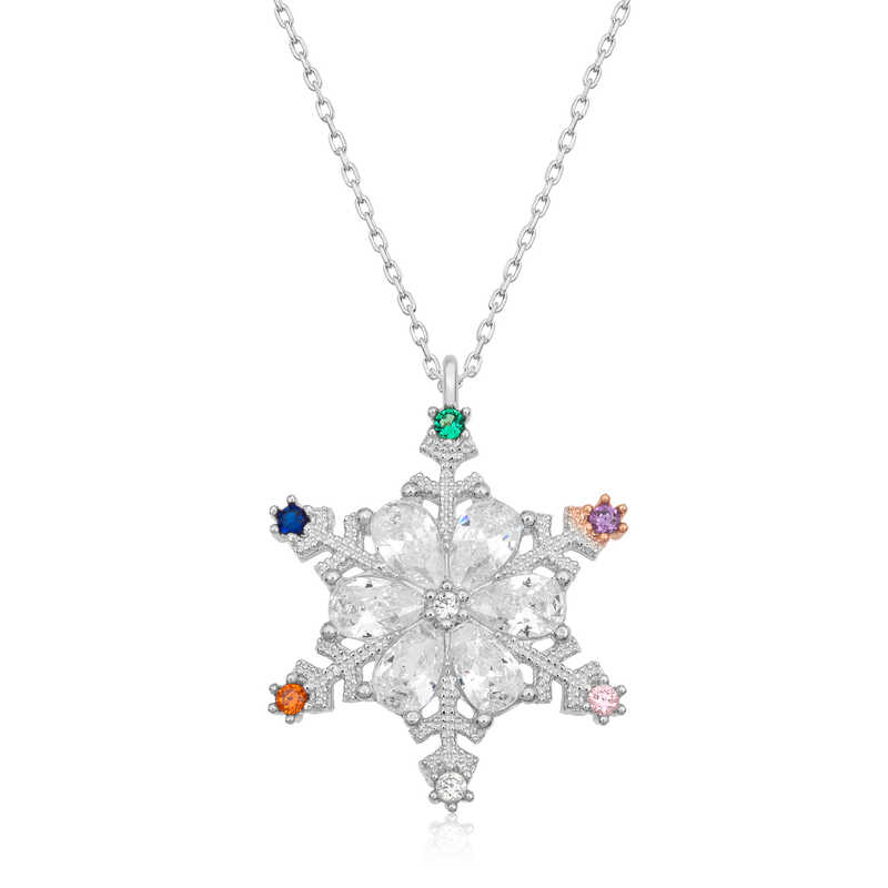 Gümüş Renkli Taşlı Kar Tanesi Kadın Kolye
