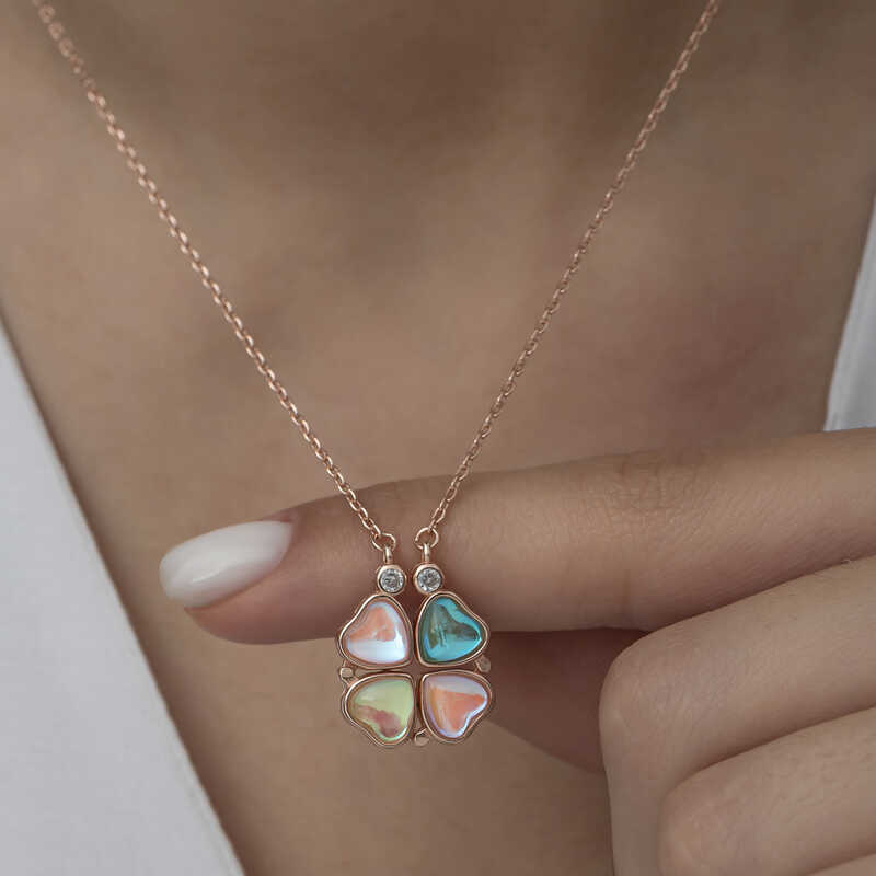Gümüş Rose Renkli Açılabilen Yonca Kadın Kolye