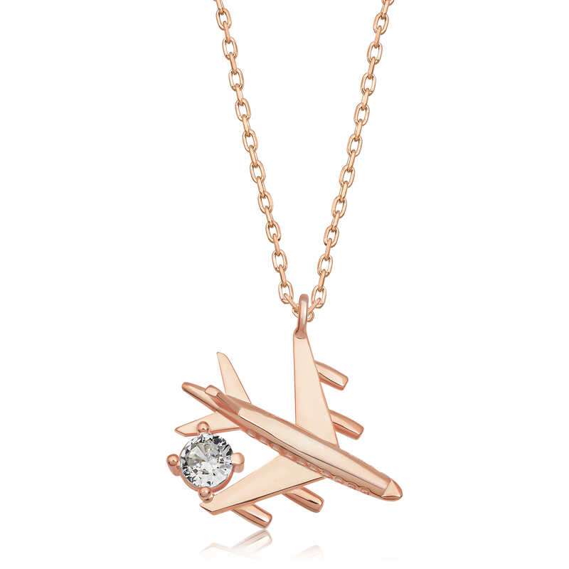 Gümüş Rose Tek Taşlı Uçak Kadın Kolye