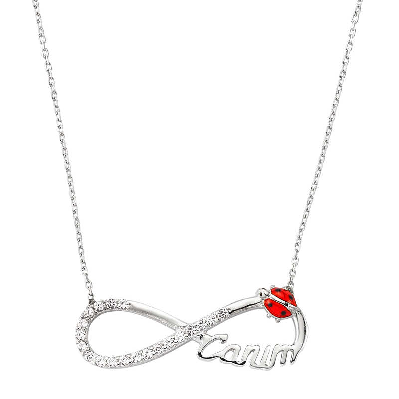 Gümüş Uğur Böcekli Sonsuzluk Canım Bayan Kolye
