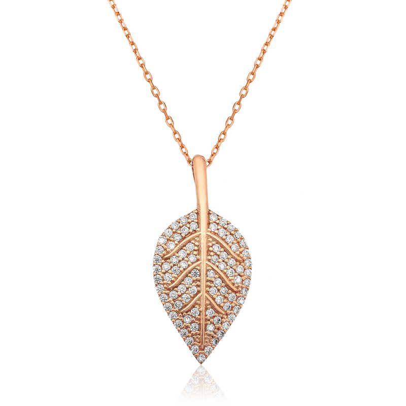 Yaprak deseni tabiattan almakta olduğu kuvveti, saygıyı ve zarafeti simgeler. ''Güçlüyüm ve yeniden doğmayı bilirim'' imajı çizmektedir ve evrene olan saygıyı belirtmektedir. Çiçekler ve bununla birlikte yapraklar, insanoğluna tabiatın verdiği en güzel hediyelerdendir. Doğanın verdiği bu bereketli hediyeyi sevdiklerinizle paylaşmaya ne dersiniz? Gümüş yaprak bayan kolye sevdiklerinizin teninde hayat bulsun. Yaprak bayan kolye; 925 ayar gümüşten imal edilmiştir. Gümüş üzerine rose altın kaplama yapılmıştır. Rose altın kaplama yapılan ürünler parlaklığını uzun süre muhafaza eder, gümüşü pembe renge çevirir ve oksitlenmeyi geciktirir. Diğer gümüş kolyelerde olduğu gibi gümüş yaprak bayan kolye de tamamı el emeği ile üretilmiştir. Üzerinde bulunan taşlar zirkondur. Gümüş ve değerli taşlar nedeniyle belirtilen ortalama ürün ağırlığında ± %10 sapma olabilmektedir.