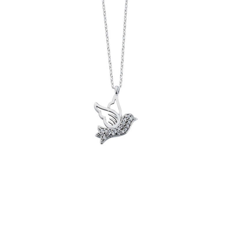 Güvercin Gümüş Kolye Zirkon Taşlı GMS1154