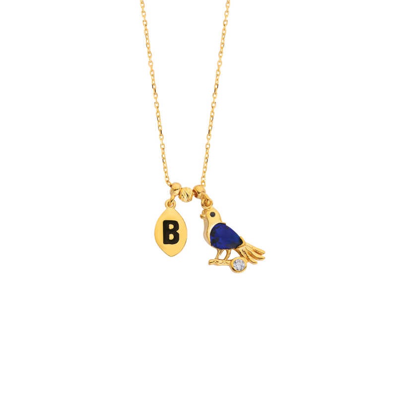 Güvercin Kuşlu Harfli Gümüş Kolye GMS1742