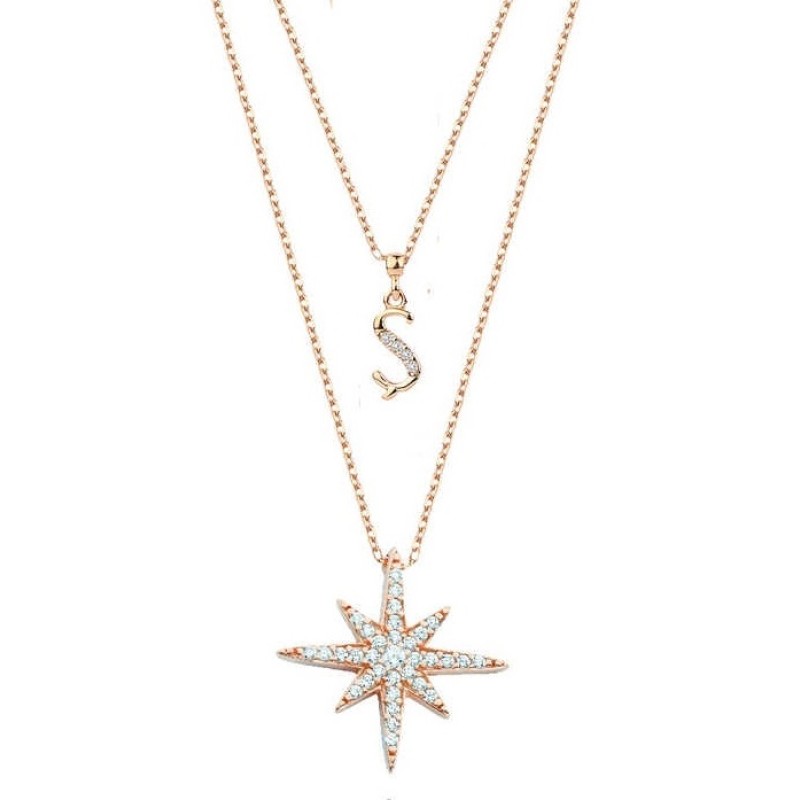 Harfli Kutup Yıldızı Rose Renk Gümüş Kolye GMS2034